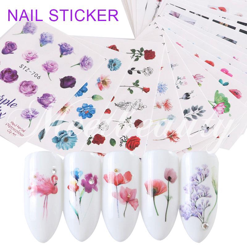 Nail Art Elegant 24 Pcsset Flower Nail Decals Nail Diy Shopee